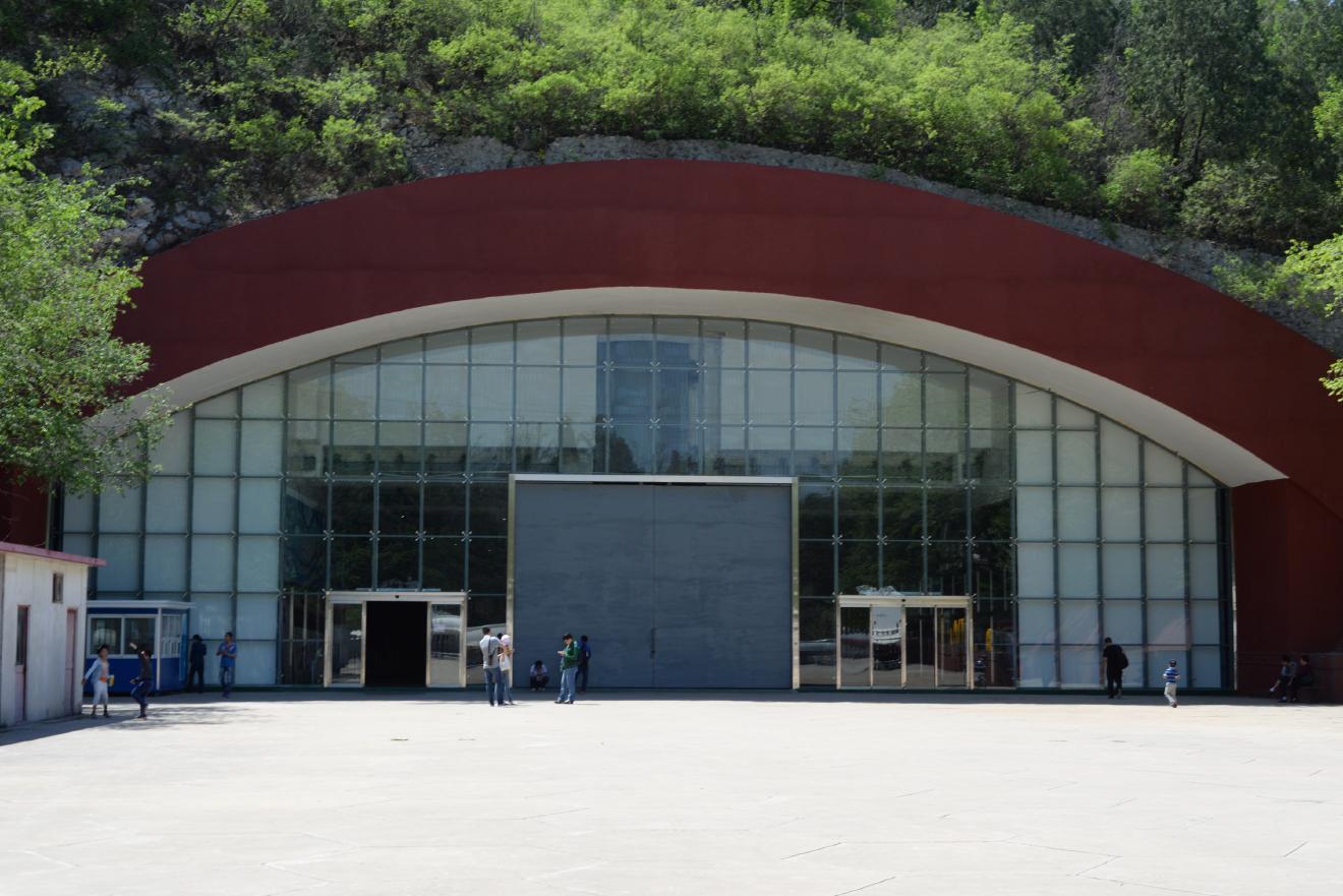 外から見るとこんな風になっています。山の中に掘られた秘密格納庫であることがよくわかります。なお、出入り口は二つありますが、どちら側でも入場券を売っていて出入りできました。