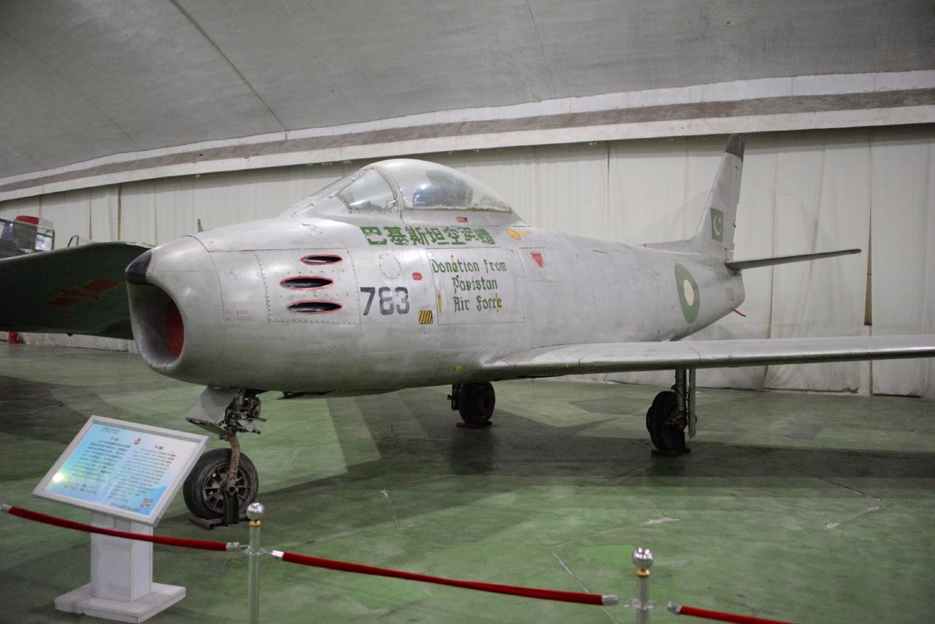 F-86はNorth American Aircraft Companyで作られました。アメリカが朝鮮戦争に投入した主力機です。1951年9月25日に初めて志願軍が撃墜し、1952年2月10日、1953年4月7日にそれぞれエースパイロットを撃墜しました。すべて本機種でした。こちらの機体は1993年8月8日にパキスタン軍から寄贈されました。