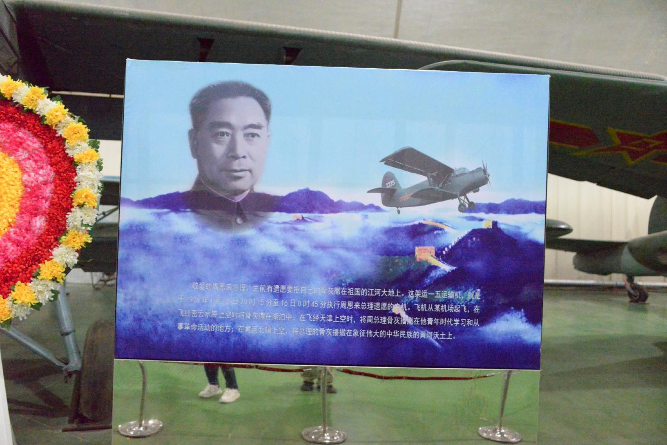 運-5輸送機です。1976年1月15日20時15分から16日0時45分まで、周恩来総理たっての希望で自身の遺骨を乗せて北京北部から天津周辺にかけてを飛行し、天津市上空で散骨しました。