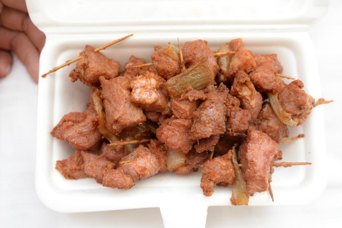 ロシア料理のお店でシシカバブをお持ち帰りした。