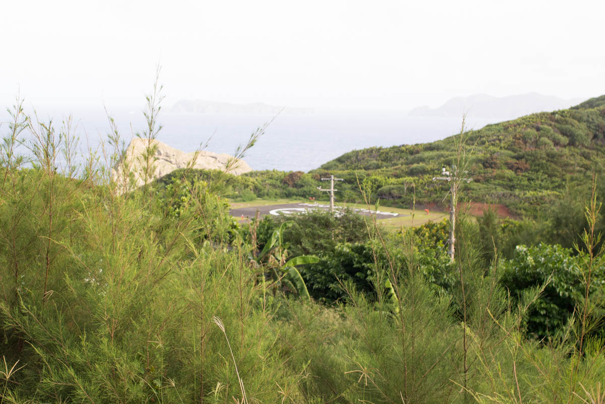 母島の都道をまっすぐ南に走っていると「ヘリポート」と書かれた標識に出会います。