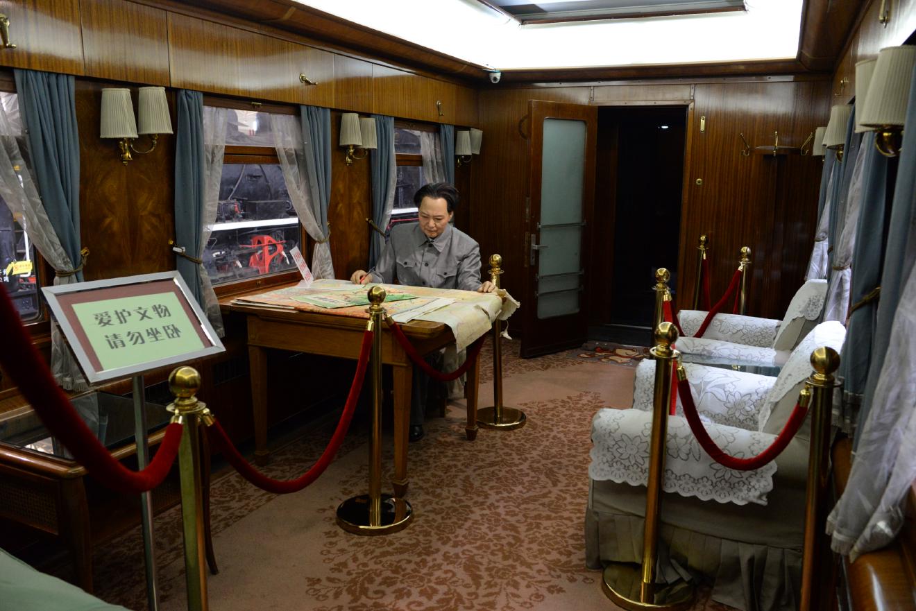 毛沢東主席が鎮座していらっしゃいます。上のYWの外観写真でも、中に毛主席がいらっしゃるのが見えます。気づきませんでした。主席なのに硬臥(B寝台)を使われているとは思いませんでした。