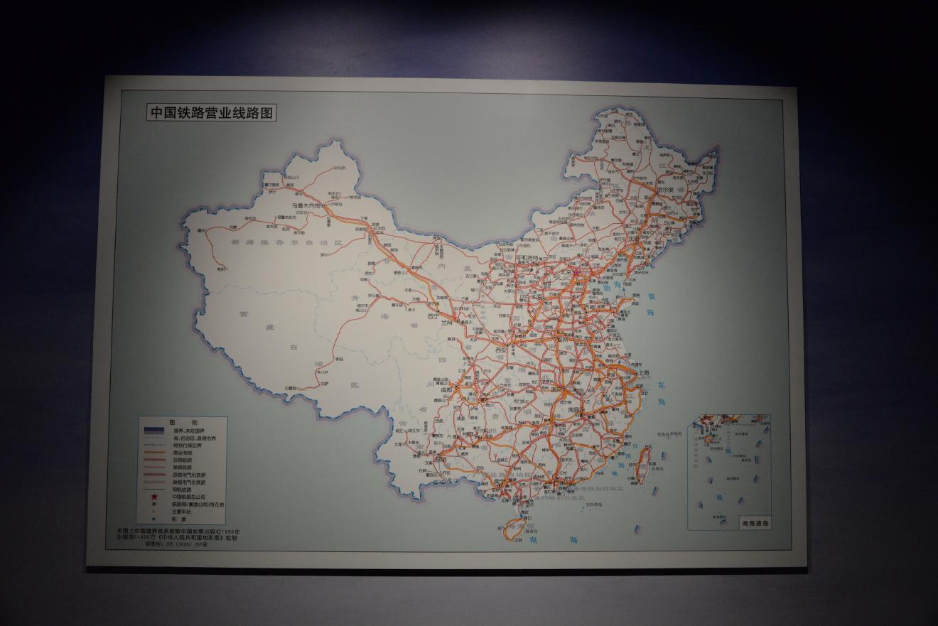 中国の鉄道網地図です。1989年に出版された地図と書かれてあるのに、チベット鉄道や台湾新幹線も書かれています。